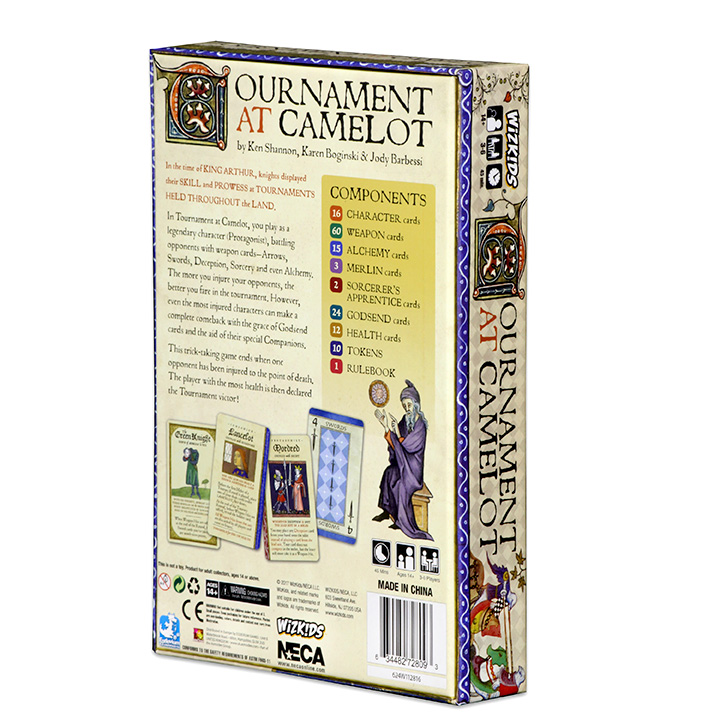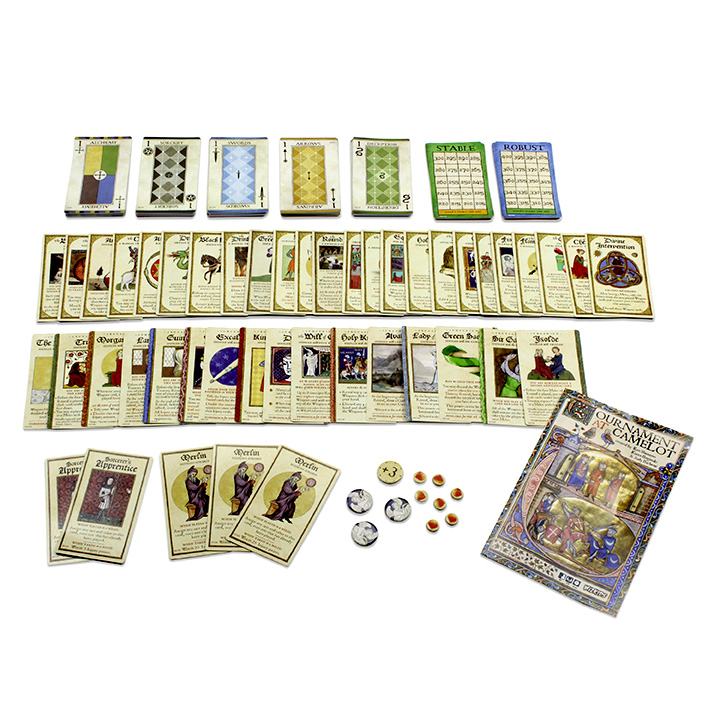 In Tournament at Camelot, you play as a legendary character (Protagonist), battling opponents with weapon cards—Arrows, Swords, Deception, Sorcery and even Alchemy. The more you injure your opponents, the better you fare in the tournament. However, even the most injured characters can make a complete comeback with the grace of Godsend cards and the aid of their special Companions.