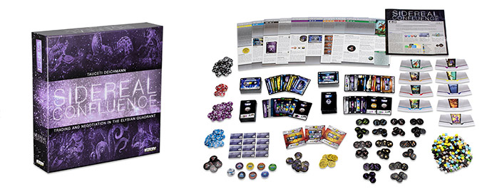 Sidereal Confluence: Trading and Negotiation in the Elysian Quadrant will be available in limited quantities this June at Origins Game Fair and will be released in stores in July. Pre-order a copy from your friendly local game store today!