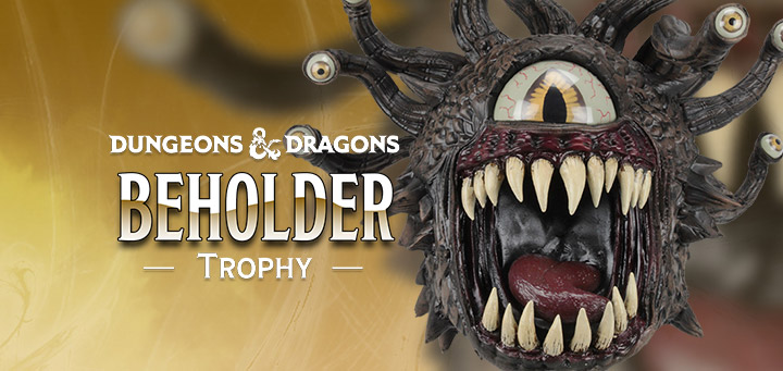 Bring the Dungeons & Dragons Beholder Trophy Figure, as seen on the Stream of Annihilation, to your castle, throne room or living quarters with this stunning recreation. With its spectacular “glass-like” eyes, nothing can escape its gaze.