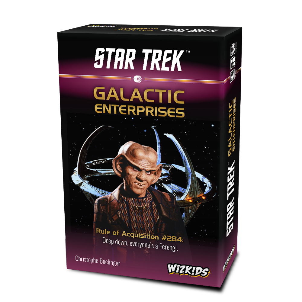 Hillside, NJ – March 7, 2018 – WizKids today announced a new creation from the mind of veteran game designer Christophe Boelinger, Star Trek: Galactic Enterprises. On the Deep Space 9 station, Ferengi wheel and deal legal and illegal items to gain the most profit. In this game, players jump into the role of a Ferengi merchant and work their way through the market in order to achieve the rank of First Clerk.