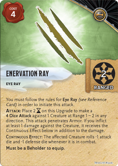 Once they have stripped you of your defenses, a beholder attacks using one of its many Eye Ray attacks. The beholders’ Enervation Ray will weaken you and make you easier to hit. Beholders love to use this ray on fighters and watch them struggle. Paralyzing Ray, as you can imagine, prevents someone from moving, attacking or taking any actions. Beholders try to save this attack for mages and clerics but anyone will do. Finally, Death Ray is something that beholders hold in reserve for their most powerful foes. Death Ray is capable of killing with only one shot from its eye beam!