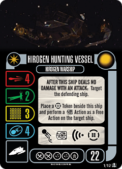 The Hirogen warship, alternatively known as a Hirogen hunting vessel, is a small, heavily-armed warship used by the Hirogen during the late 24th century to hunt prey in the Delta Quadrant. This type of ship is piloted by two Hirogen Hurnters, an Alpha Hirogen and a Beta Hirogen. These vessels are equipped with monotanium armor plating and have dicyclic warp signatures. Inside each Hirogen warship is a control room with walls adorned with trophies of the Hirogen’s hunts as well as bladed weapons, their implements for hunting and performing osteotomies.