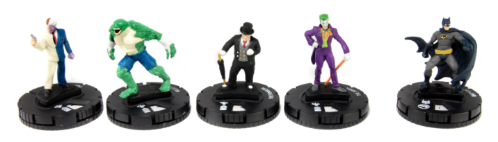 The Batman: Gotham City Strategy Game features 5 brand new pre-painted sculpts of The Joker,The Penguin, Killer Croc, Two-Face & Batman on our new HeroClix SwitchClix bases and includes 2 sets of HeroClix dials! The first set of HeroClix dials are designed for the ruleset of the Batman: Gotham City Strategy Game and the second set of dials are designed for HeroClix PAC play. TheSwitchClix technology allows us to deliver 2 play experiences using both of these HeroClixsystems and does not constrain design or playability. In effect, you get two HeroClix games with one purchase!