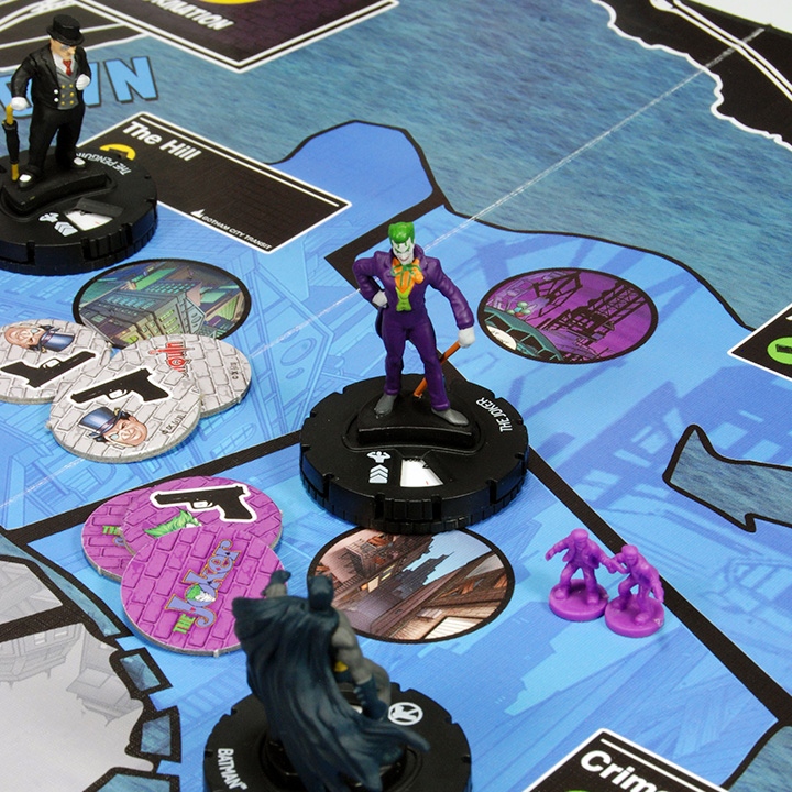 The Batman: Gotham City Strategy Game is a unique combination of Euro-style sensibility combined with the best elements of Ameri-trash theme and design. The core game mechanic is worker placement— placing your Villain, henchmen and Threat tokens to control blocks of Gotham City so as to produce the most income possible—overlaid with thematic elements that bring the stories and the characters of DC Comics Batman to life. The struggles by players for control of blocks— through resource placement or through face offs between Villains— make for a high level of player interaction. Each Villain has their own strengths and weaknesses and play much differently from one another significantly adding to the replay value of the game. We are confident that fans of DC Comics Batman and fans of tabletop and strategy gaming alike will both appreciate and enjoy the Batman: Gotham City Strategy Game.