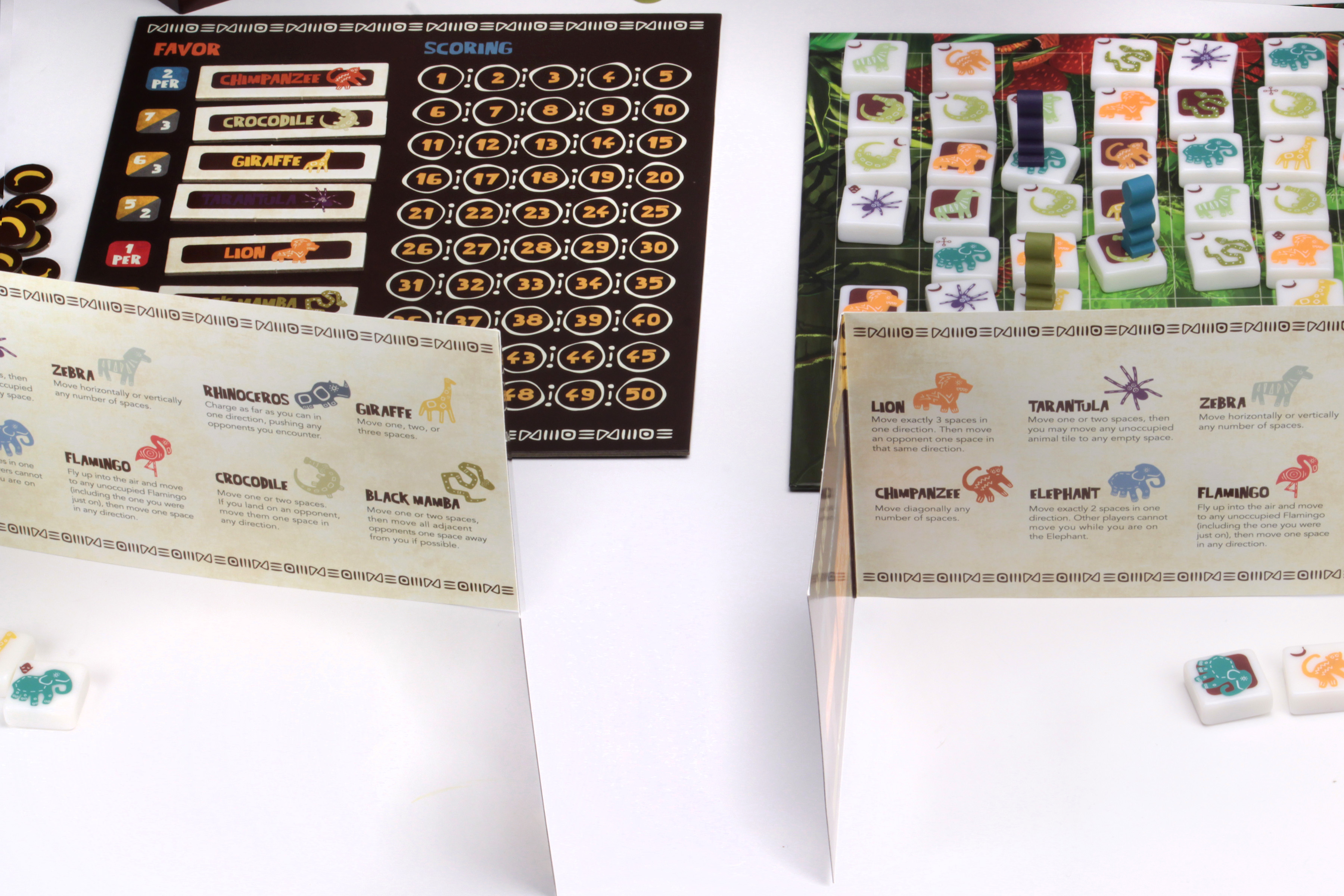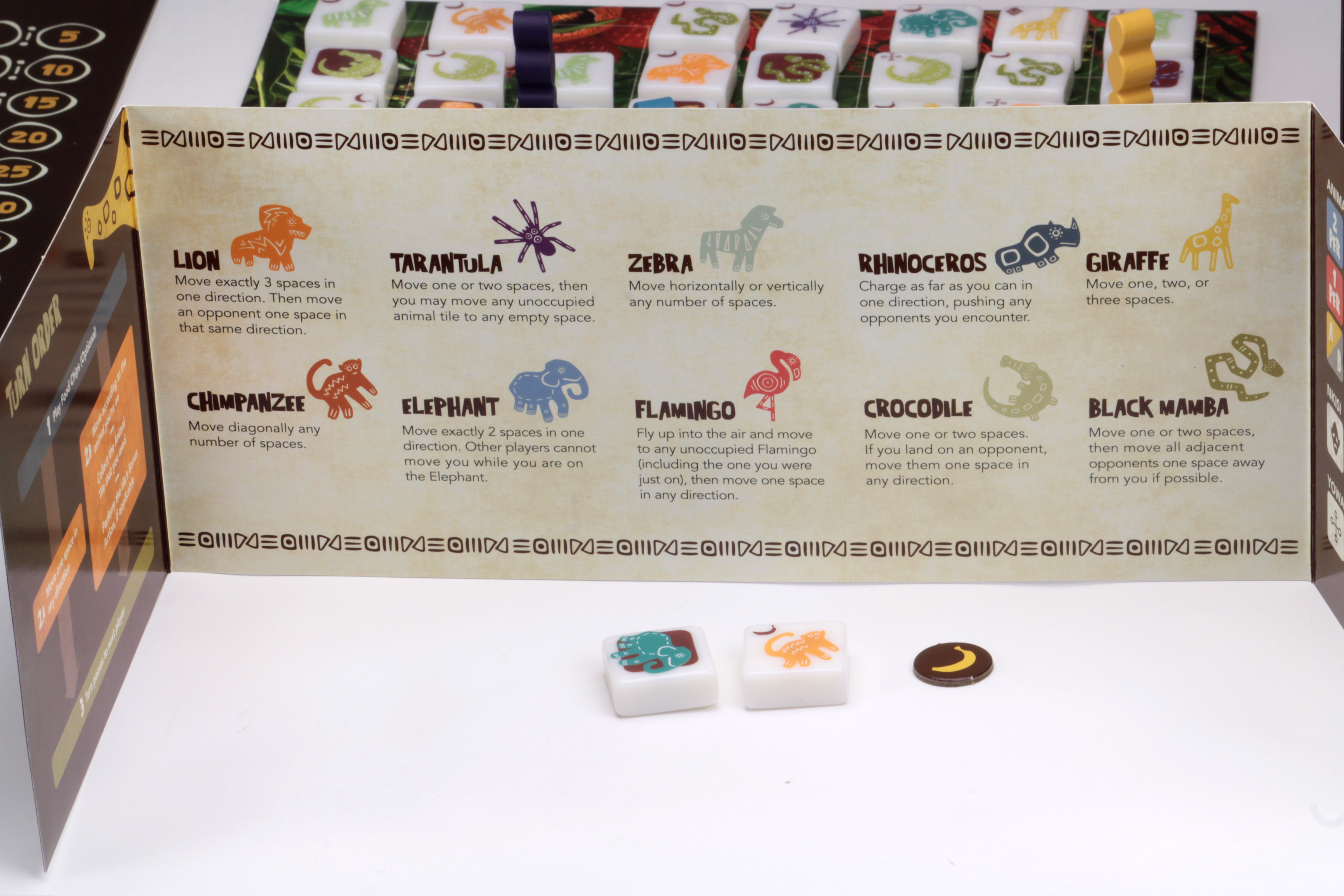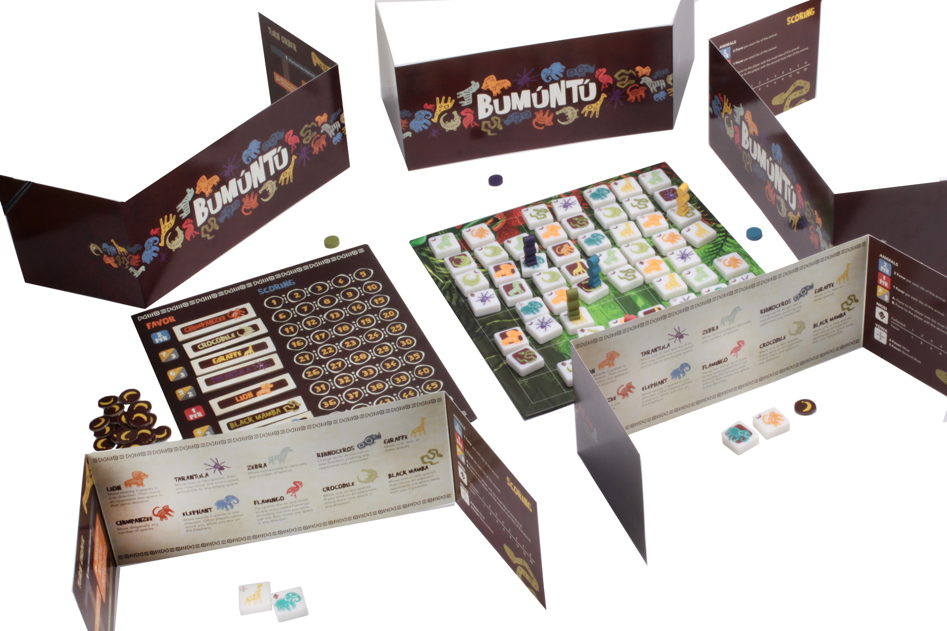A common theme in African folklore is that animals are wise creatures who teach humans to do good and moral things. In Bumúntú, based on the Bakongo culture of central Africa, you are a tribal leader seeking to befriend the animals. Trek through the jungle, follow the animals’ guidance, and earn their favor. Successfully earn the most favor and the animals will help bring your people to prosperity.