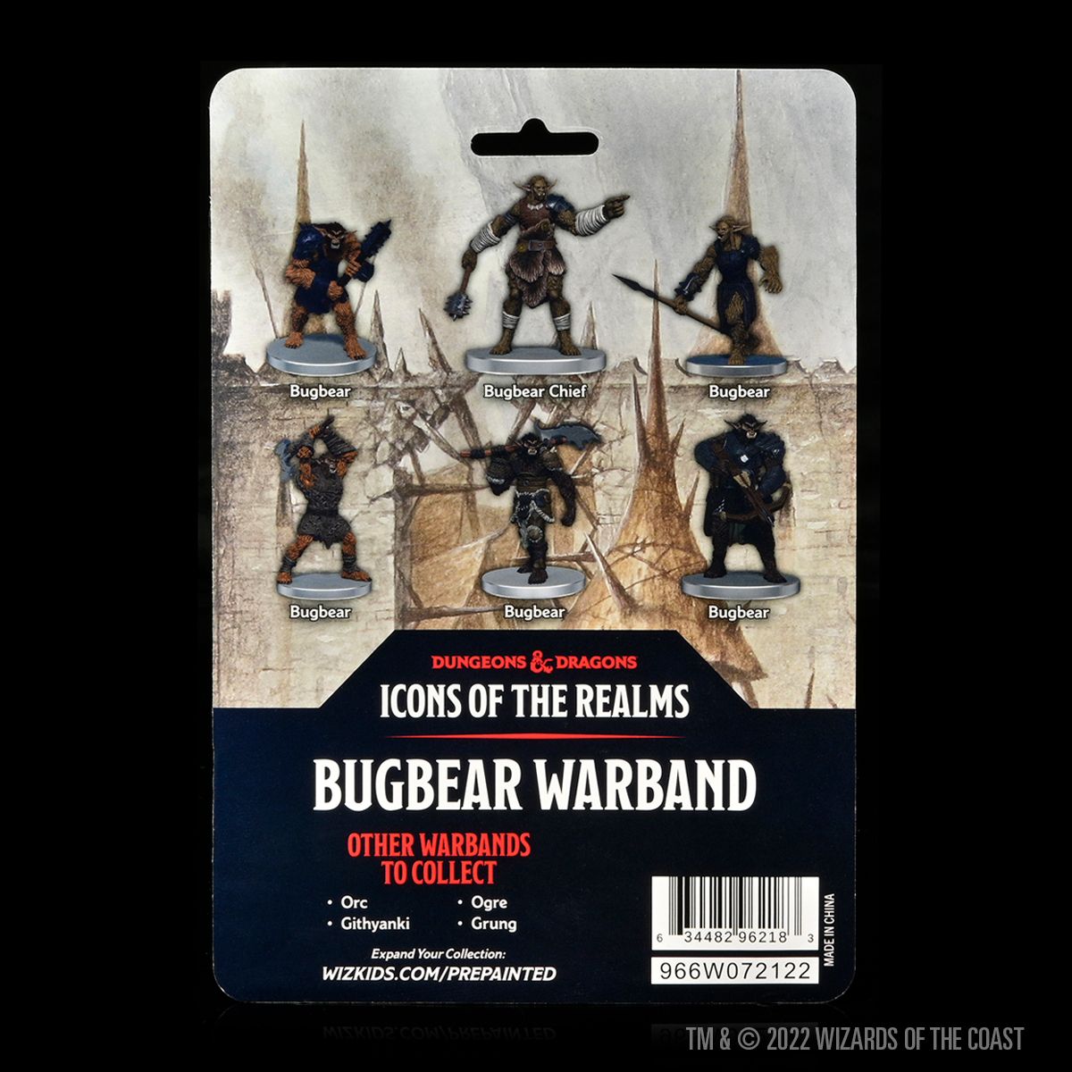 The D&D Icons of the Realms: Bugbear Warband contains six of the iconic D&D foe for your adventurers to battle! Dungeon Masters can quickly build new encounters for their players with the awesome mix of Bugbears, to keep play sessions exciting over multiple campaigns. With its non-blind packaging, building a quick Bugbear army is quick and simple!