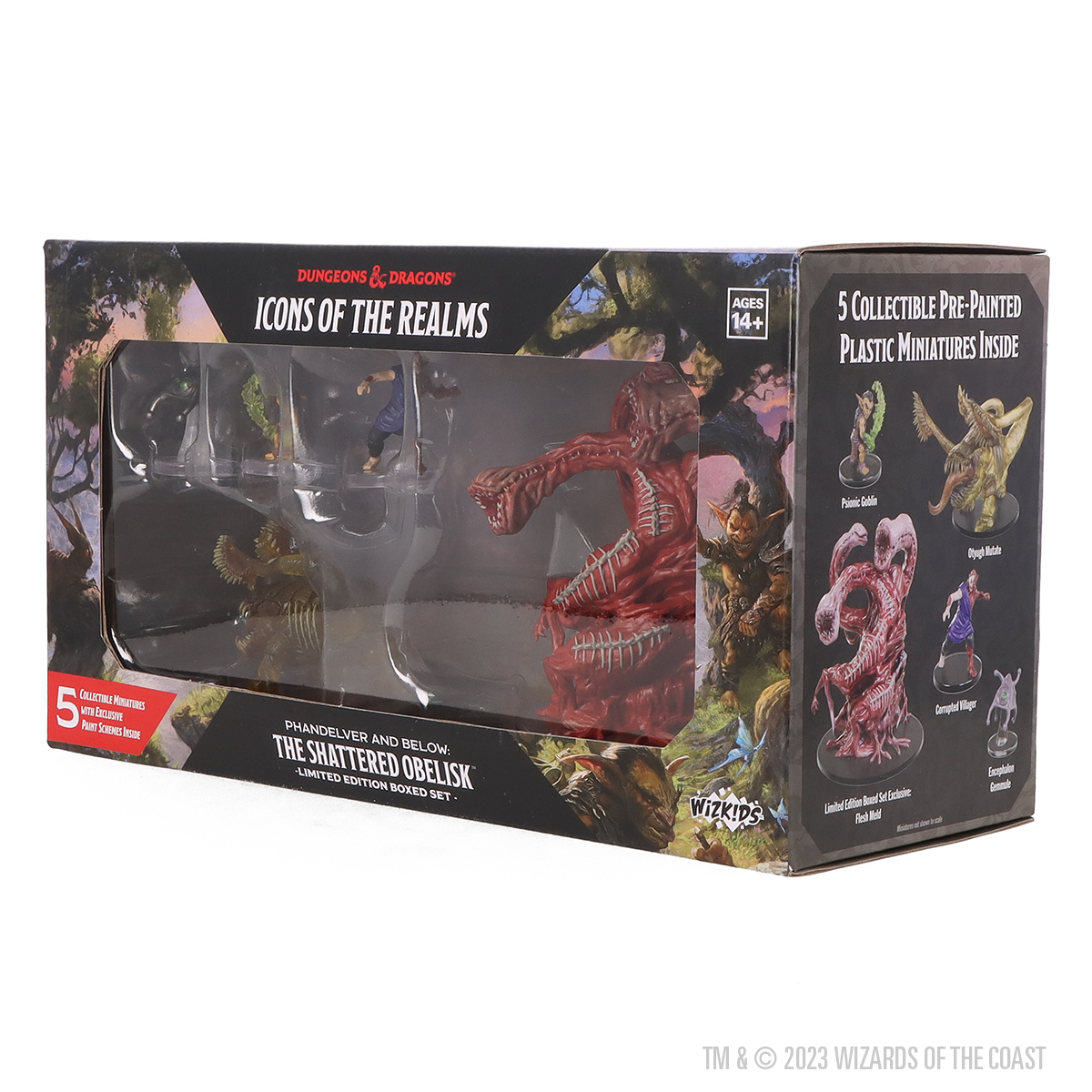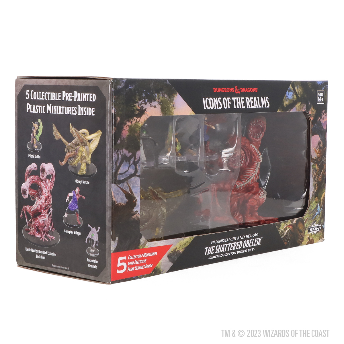 The D&D Icons of the Realms: Phandelver and Below: The Shattered Obelisk – Limited Edition Boxed Set is a sampling of the complete D&D Icons of the Realms: Phandelver and Below: The Shattered Obelisk booster set. The Limited Edition set will release before the complete booster set.