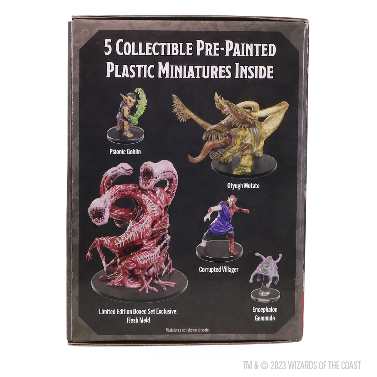 This set contains three medium and small-sized creatures, one large-sized creature, and one huge-sized creature. Each figure has a paint scheme unique to this box, with the Flesh Meld being a miniature exclusive to this boxed set.
