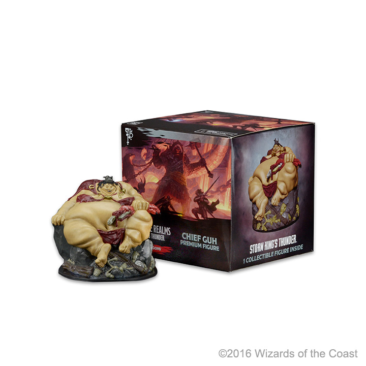 The Chief Guh pre-painted promotional figure stands several inches tall and towers over all the standard sized miniatures in D&D Icons of the Realms: Storm King’s Thunder. The perfect adversary for your next adventure and a beautiful display piece as well!