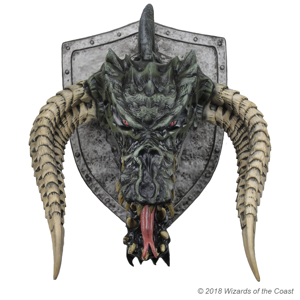 The Black Dragon Trophy Plaque is made of foam rubber and latex that’s carefully hand-painted for realistic detail. The trophy plaque comes with everything you need to mount the plaque to your wall.