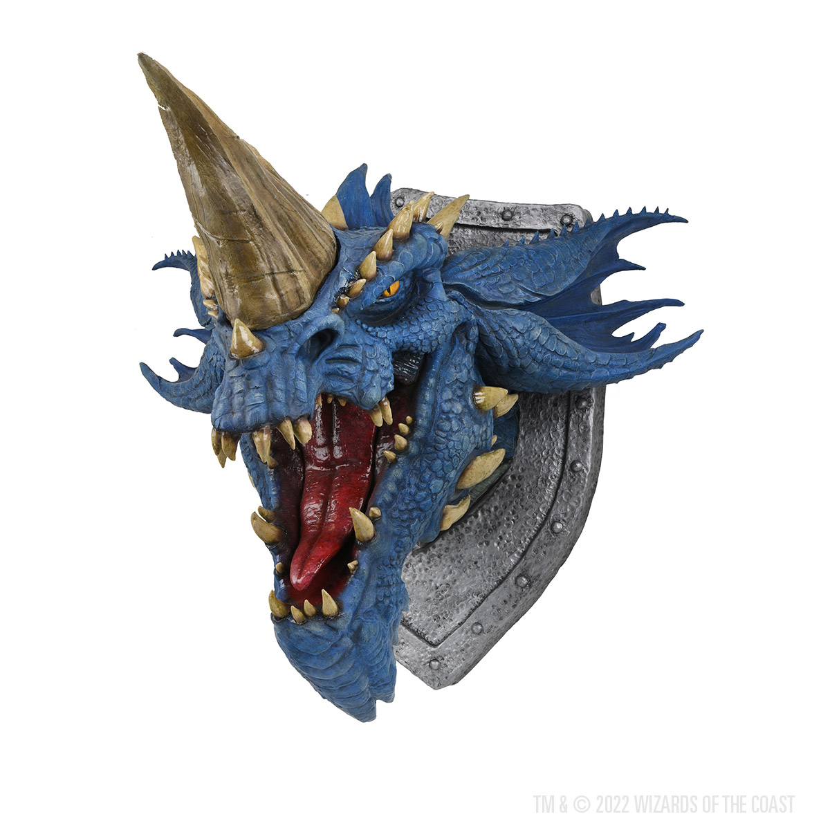An encounter with a blue dragon is a battle to remember – now you can have the trophy plaque to prove who came out victorious! The Blue Dragon Trophy is created from foam rubber and latex that’s hand painted to show off every feather and fearsome detail. Mounted on a plaque, the blue dragon is the perfect addition to your wall of glory. The trophy plaque comes with everything you need to mount the plaque to your wall of glory!