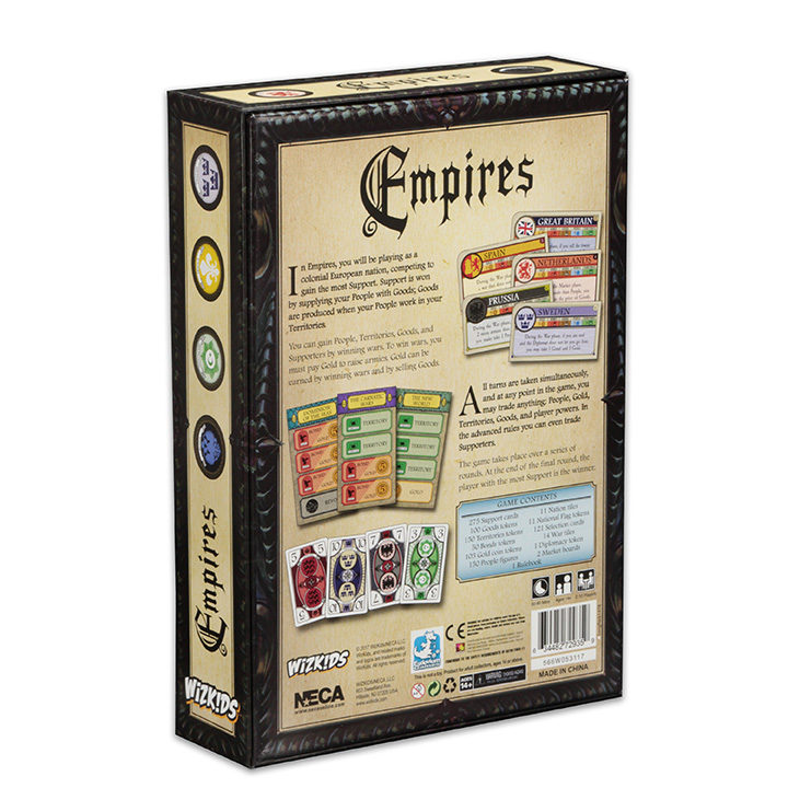 Set in the 18th century, players are powerful nations like Russia, Great Britain, Spain, France, et al, competing to expand their empires by gaining the most support. Support is won by supplying your people with goods; goods are produced when your people work in your territories.