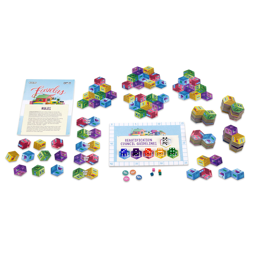 Favelas is a tile laying game about the beautification of the iconic Favelas of Rio de Janeiro! These stacked and everevolving neighborhoods are home to many people who stand to benefit greatly from this infusion of money, modernization and beauty.