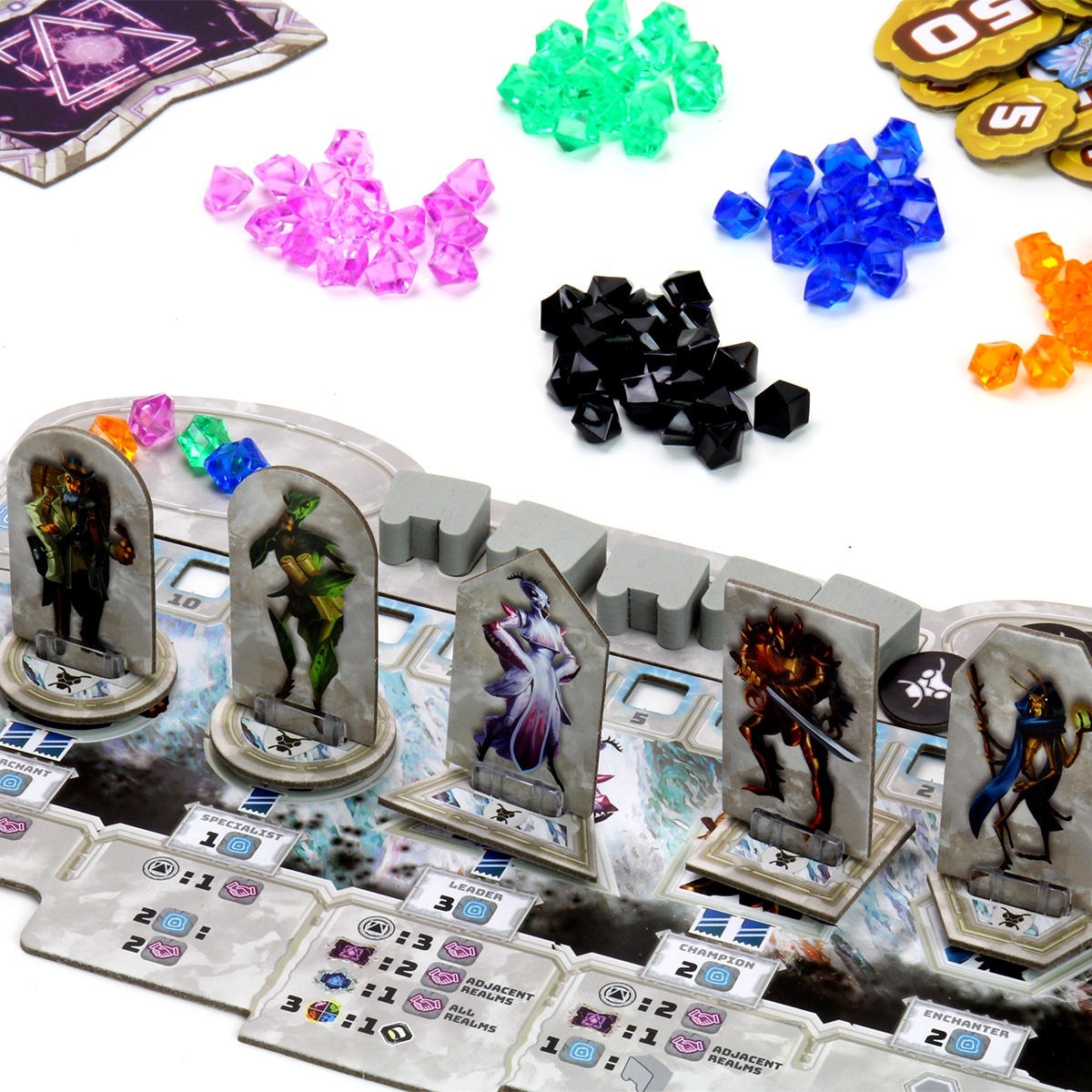 - Varied gameplay – with only two Elemental Lords in play each game and a variable central board, no two games are alike!