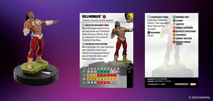 A perpetual thorn in Wakanda’s side, Killmonger joins the inaugural HeroClix 400 set as a tenacious wildcard. Killmonger is a consummate soldier that relishes what he does, but is also known for his nasty habit of coming back from the dead!. We made sure his dial stays true to this multifaceted foe.