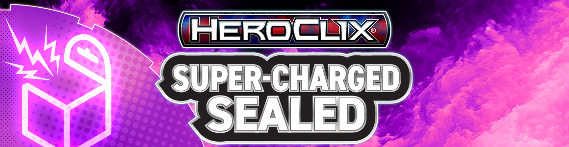 The Super-Charged Sealed Format gives players the chance to build a new team from a bigger assortment of figures. What makes this Format super-charged? Unlike Sealed, where players open two boosters from one HeroClix™ set, in Super-Charged Sealed, players open three boosters chosen from two different HeroClix sets.  Since Super-Charged sealed only allows the use of game elements opened during the event, it's a great way for players to add figures from new sets to their collection!