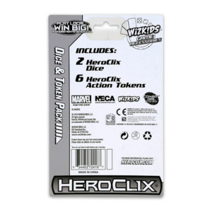 The Marvel HeroClix: Spider-Man Dice & Token Pack contains 2 custom dice featuring a Spider-Man icon and 6 action tokens featuring the Wall Crawler himself!