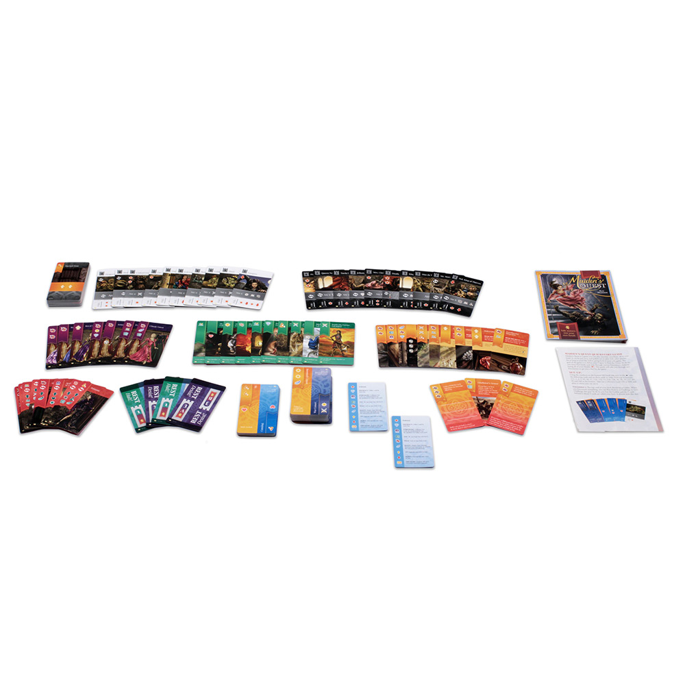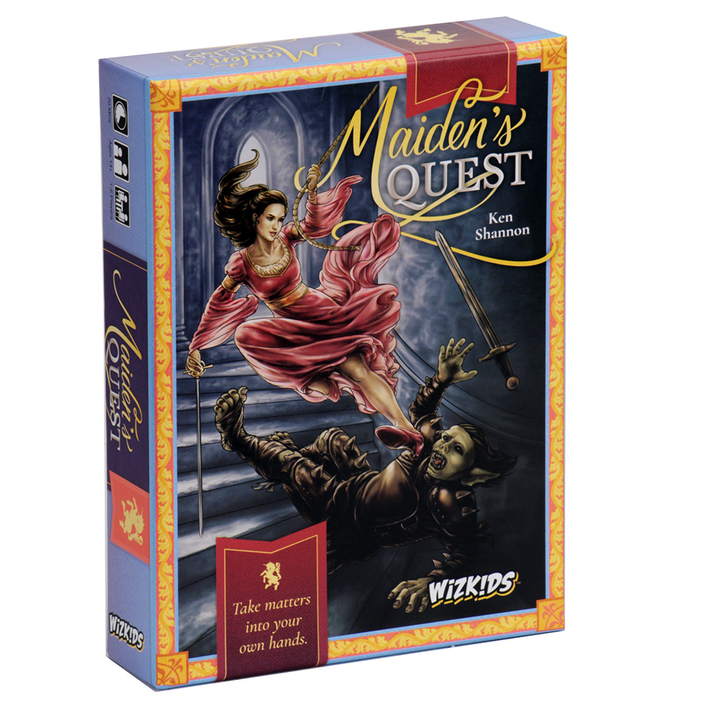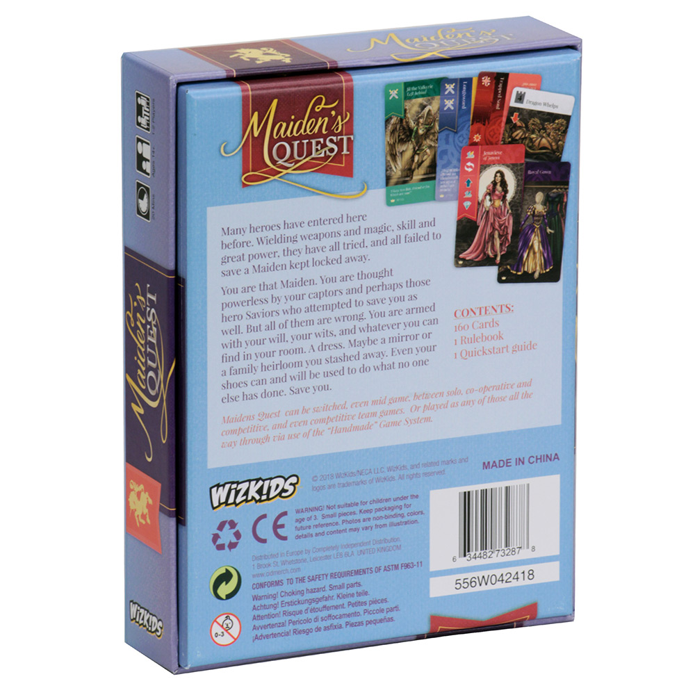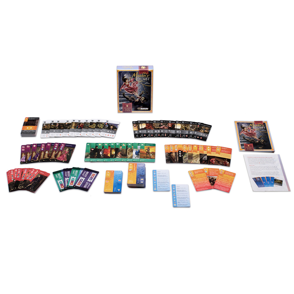 Maidens use cards from their hand to attempt to defeat an enemy or obstacle. As you play, the game’s difficulty grows as enemies of increasing veracity become active! An innovative turn and flip mechanism allows each card to represent up to four items, encounters, or allies.