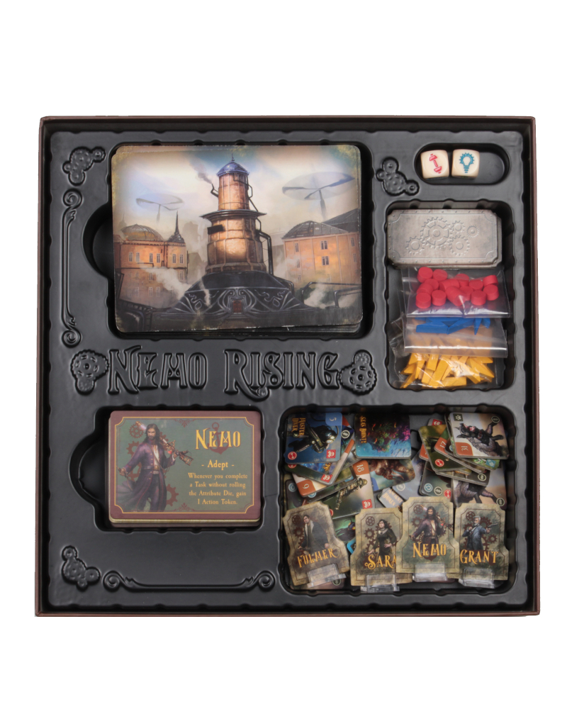 Nemo Rising: Robur the Conqueror is a cooperative board game that follows the new adventures of Captain Nemo and the crew of the Nautilus, as reintroduced by C. Courtney Joyner in his novel, Nemo Rising.