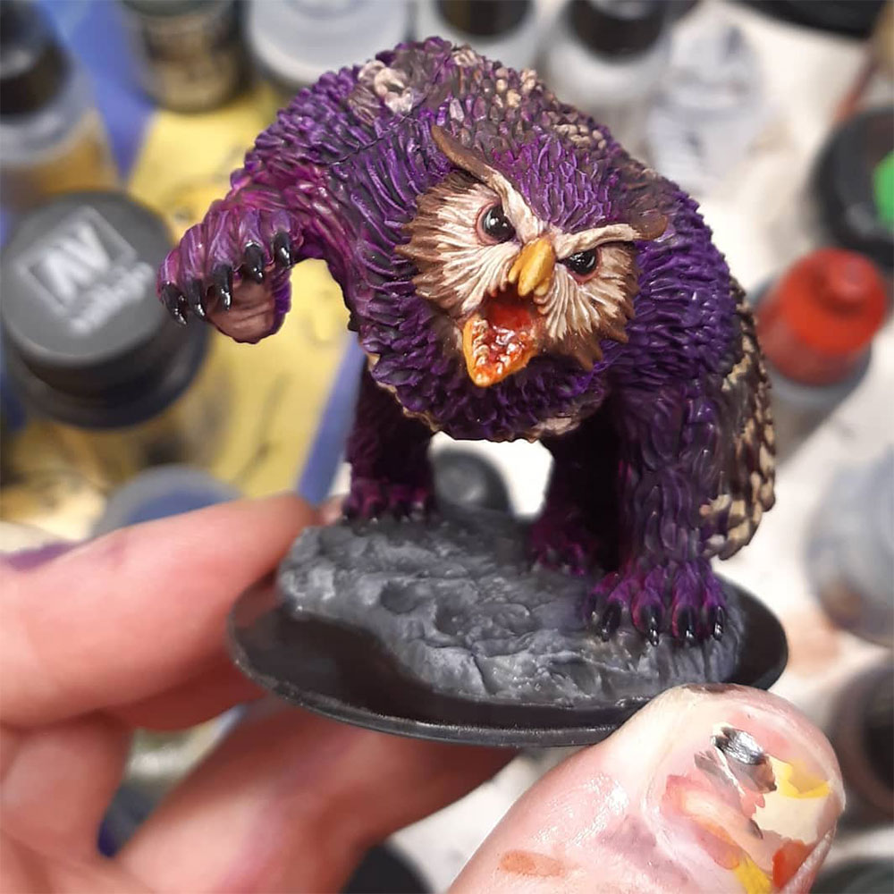 Please send us photos from your event to share! We’d love to see photos from your event in action, finished painted Owlbear figures and whatever else you would like to show us! In the meantime, here are some example painted Owlbears from fans around the web: