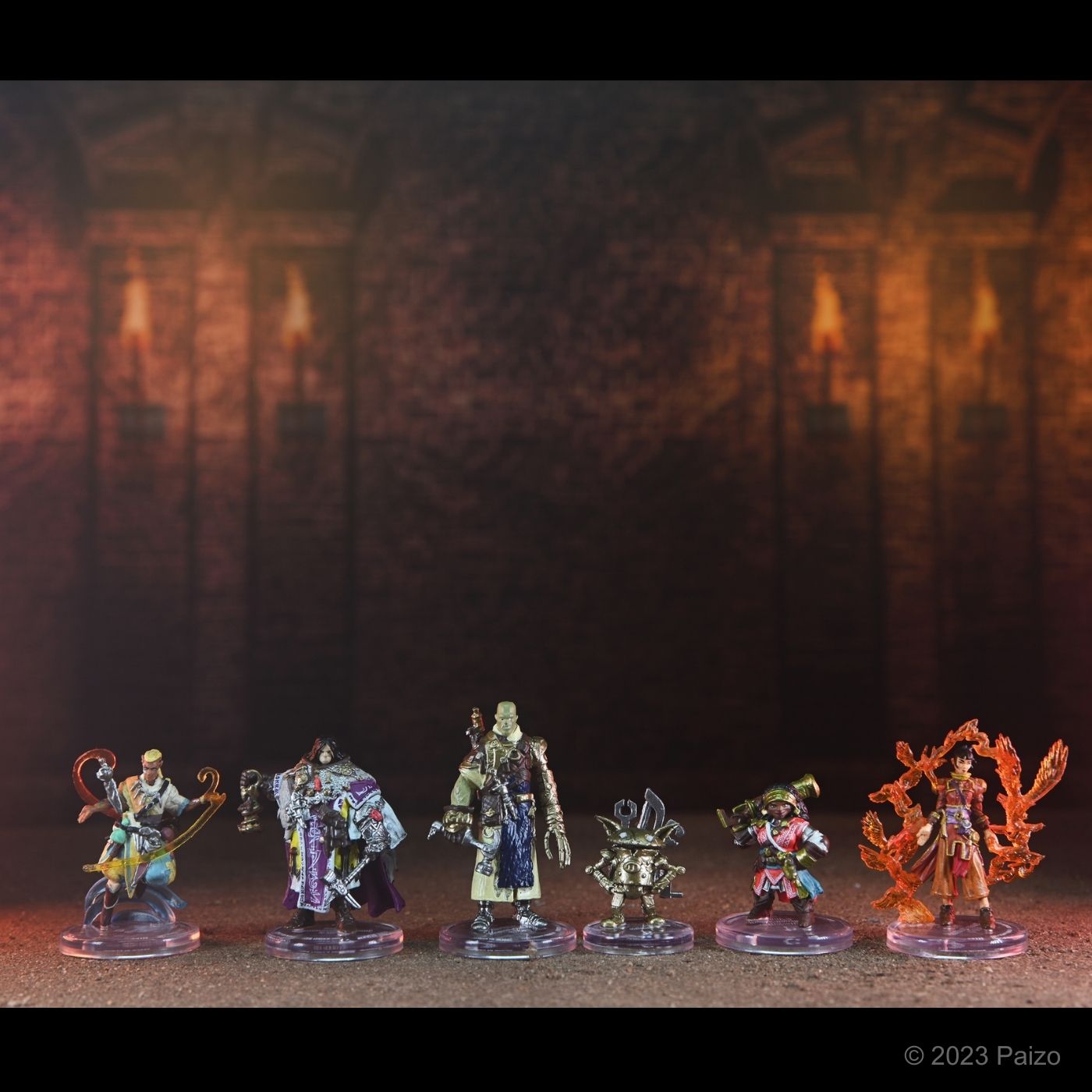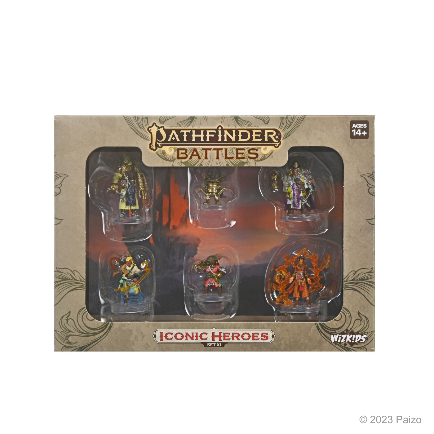 Pathfinder Battles: Iconic Heroes Box Set XI includes six all-new miniatures featuring famous personalities from the Pathfinder role-playing universe. Each of these miniatures is an all-new sculpt and will feature a dynamic pose, incredible detail, and a premium paint job.