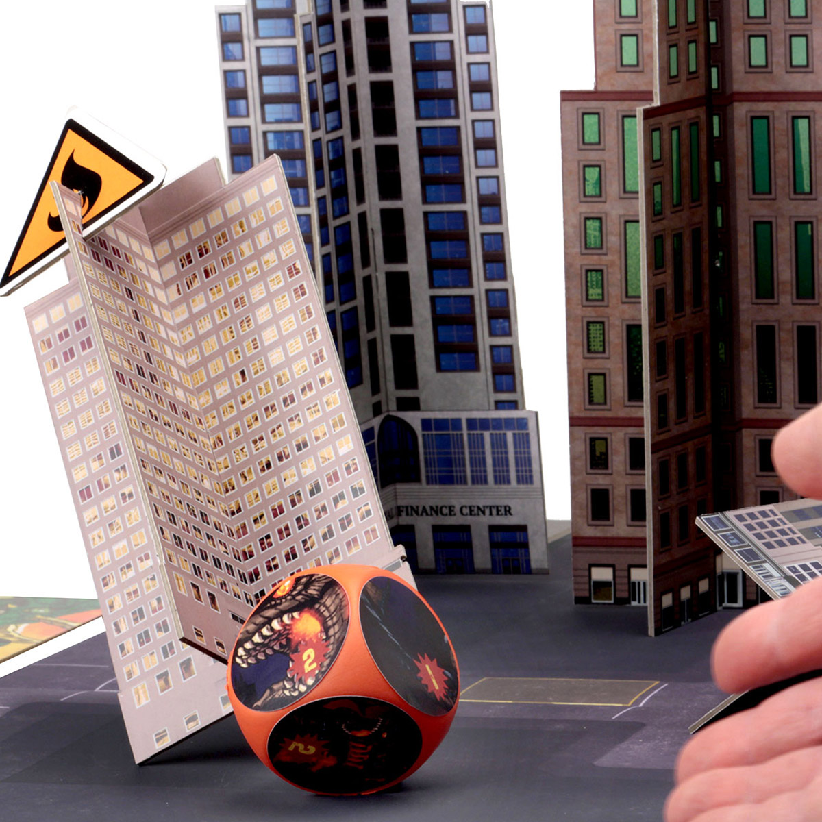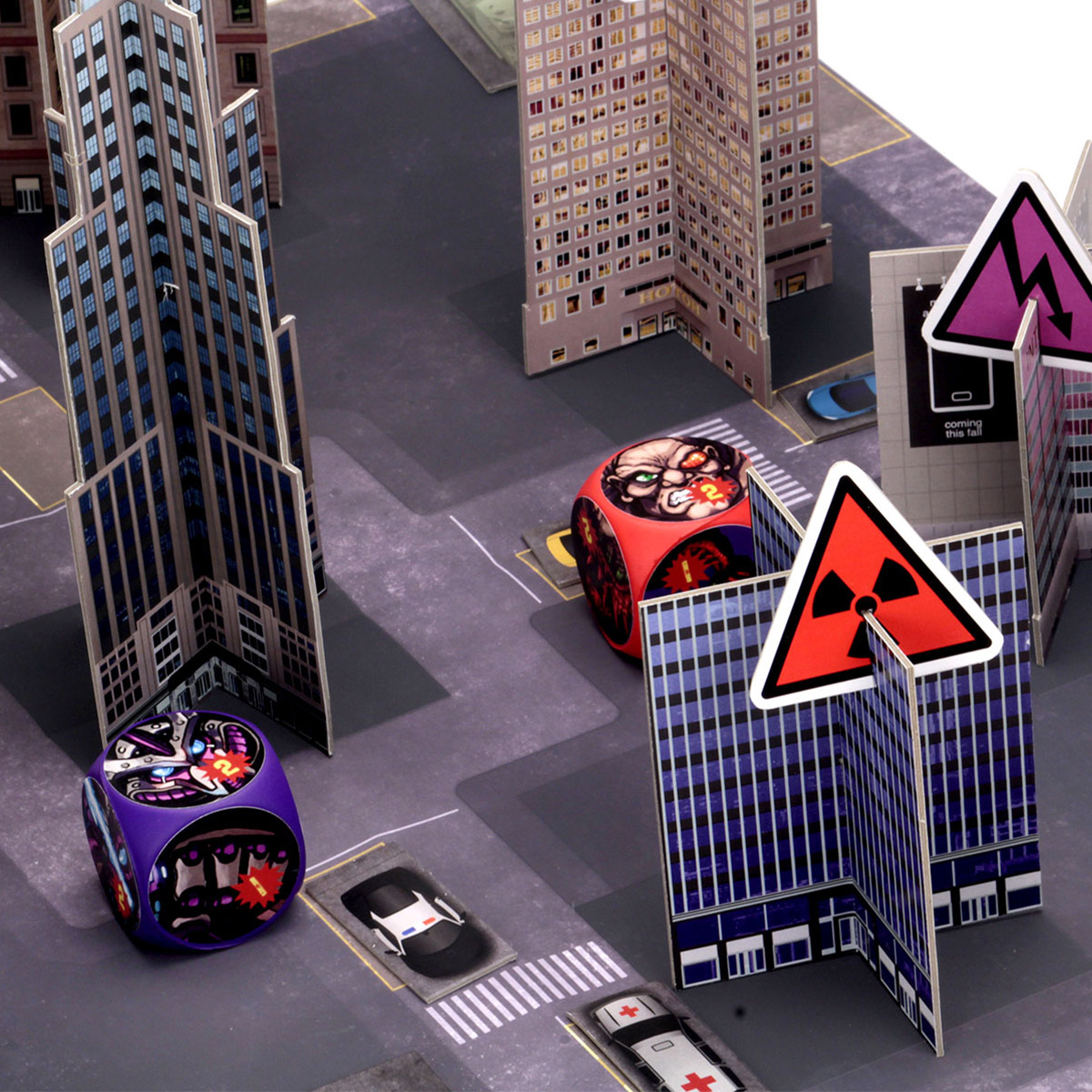 Players must have good aim and a deft hand as they roll their monster dice into the city knocking down buildings and attacking anything within range. You might even be able to throw cars at your foes!