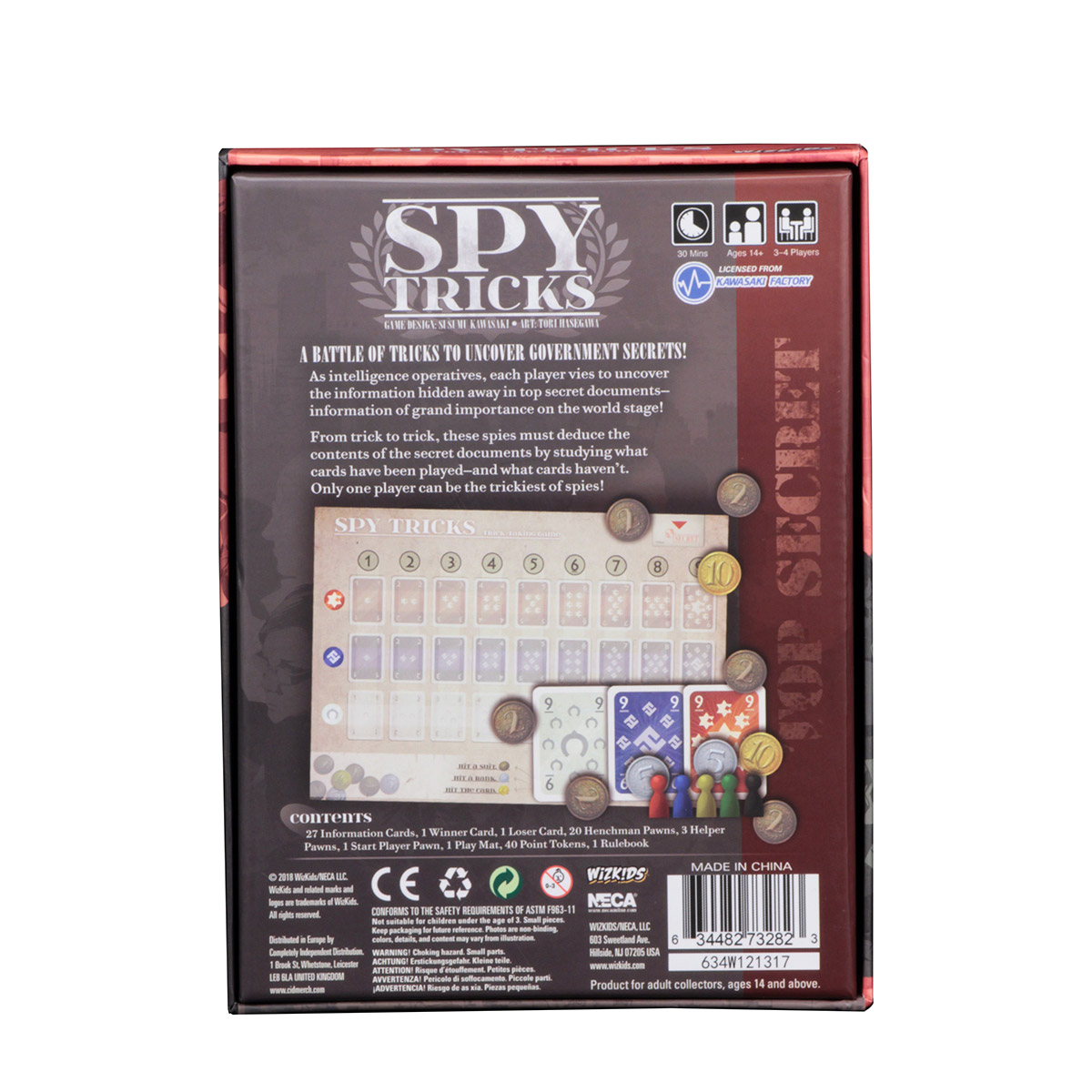 Put your espionage skills to the test with WizKids’ new release, Spy Tricks! Players will act as spies from various countries trying to guess the contents of secret documents.