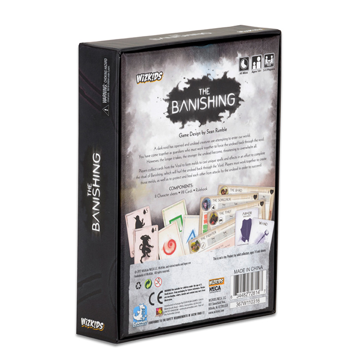 Players collect cards from the Void to form melds to cast unique spells and effects in an effort to complete the ritual of Banishing, which will hurl the undead back through the Void. Players must work together to create those melds, as well as to protect and heal each other from attacks by the undead in order to succeed.