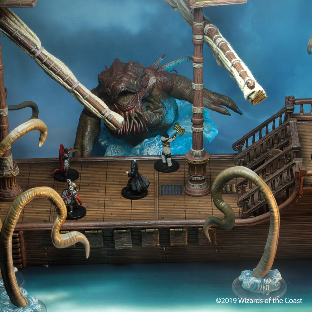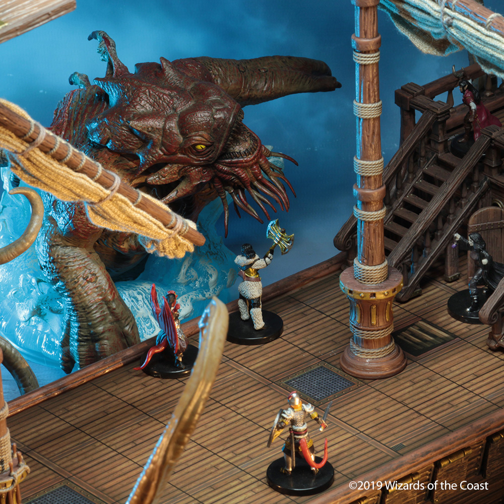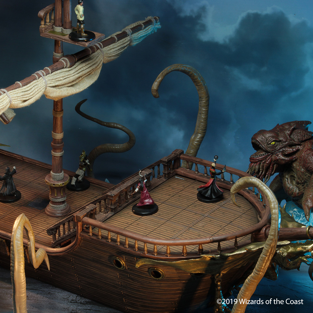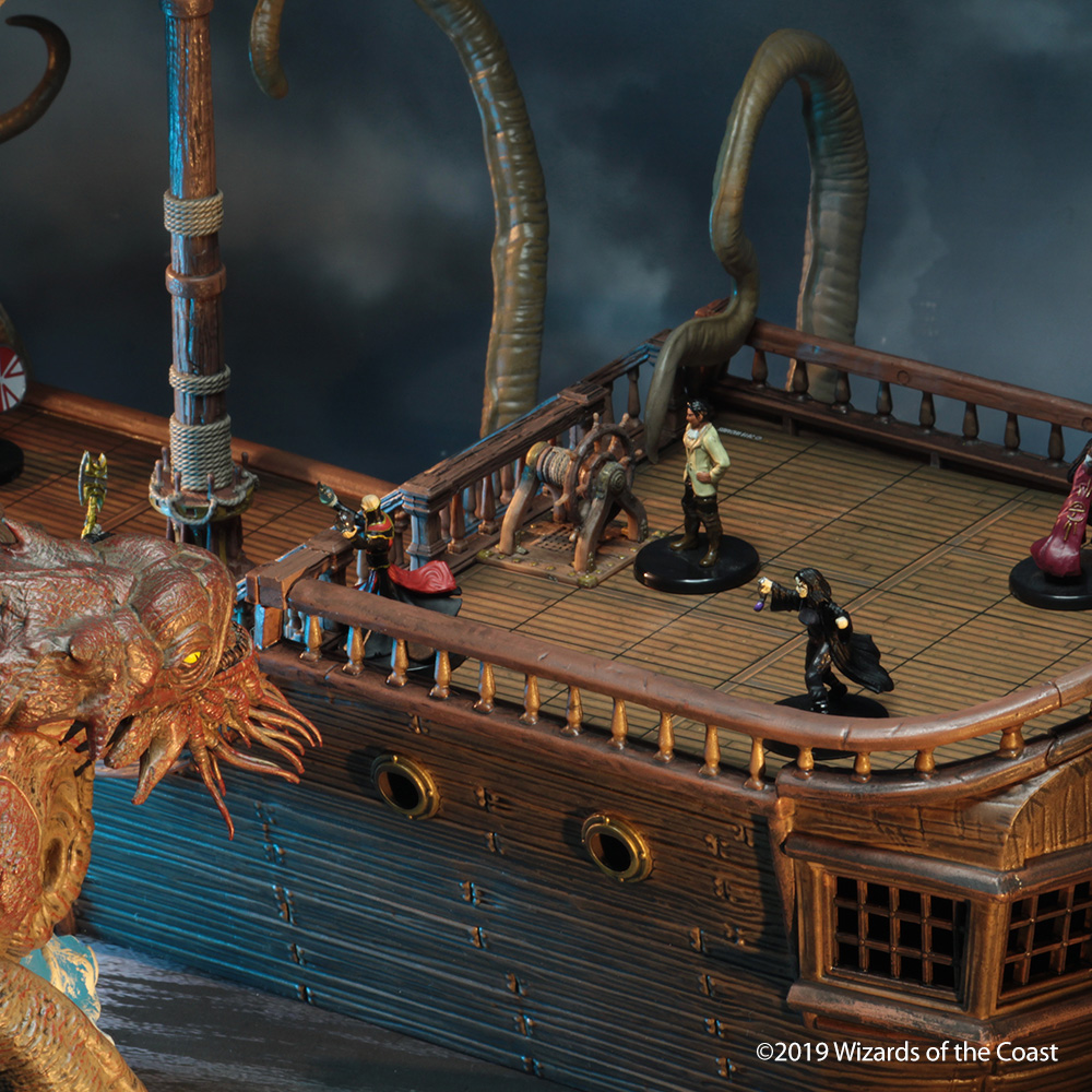 Perfect for aquatic adventures, one shot side quests, or even taking on the godlike kraken, the Icons of the Realms: The Falling Star Sailing Ship is sure to bring marvelous excitement to your tabletop!