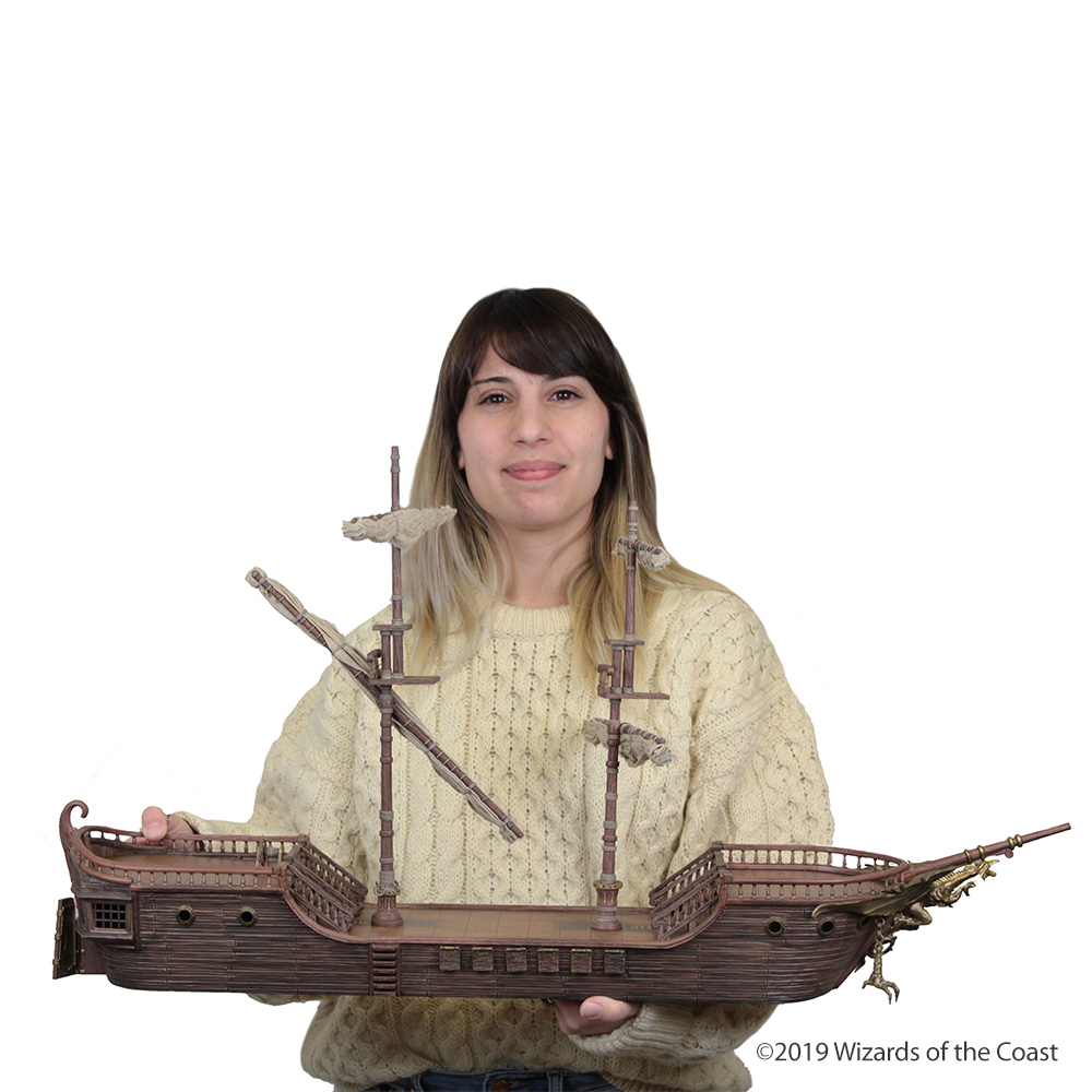 This fantastic fully-painted miniature of colossal stature and tremendous detail stands a whopping 17.2″ tall, 33″ long, and 6.4″ wide (12.6″ wide at the masts!)* and has a myriad of features!
