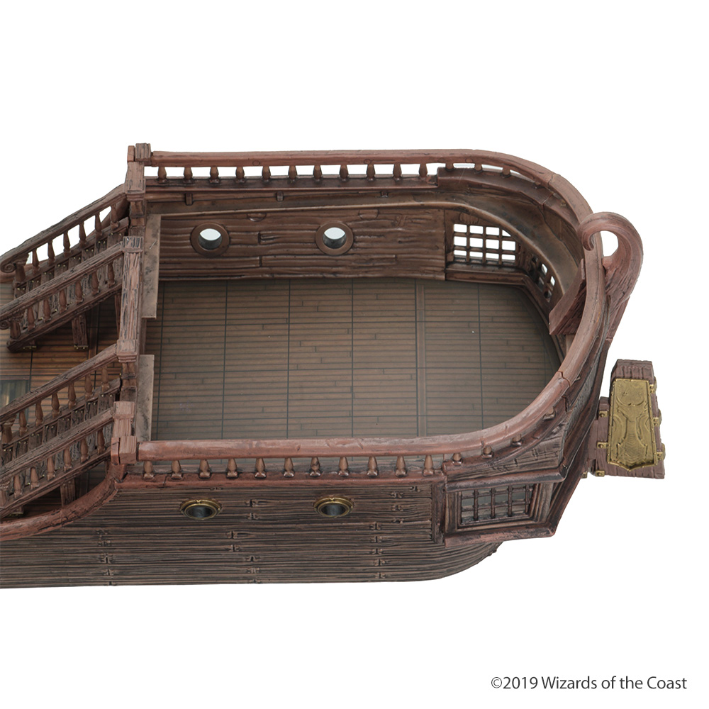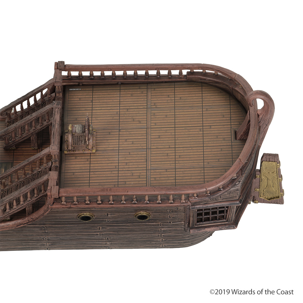 This feature rich ship includes multiple standalone deck tiles* allowing players to fight on the deck or in the dark underbelly of the ship, magnetized removable masts, and even functional hatches on the sides of the ships for you to fire upon your enemies!**
